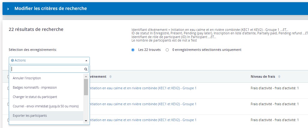 - Ouvrir la fiche du participant, onglet Activités, ...